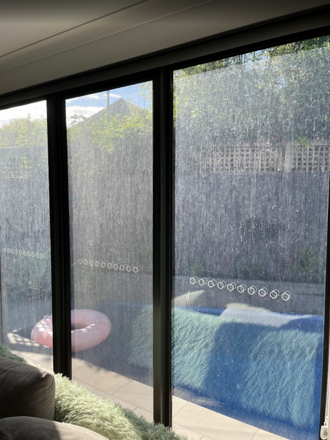 Glass pool fencing and exterior balustrades cleaned streak-free. Huge visual impact - cloudy glass becomes crystal clear.
